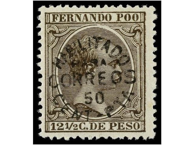 COLONIAS ESPAÑOLAS: FERNANDO POO. 50 cts. s. 12 1/2 ctvos. castaño. LUJO. Ed.29. Cat. 220€. (Image1)