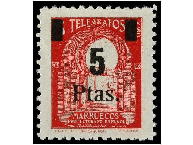 MARRUECOS. 5 pts. s. 5 cents. carmín. Excelente centraje, RARÍSIMO en esta calidad. Cert. CEM. Ed.T-51. Cat. 815€. (Image1)