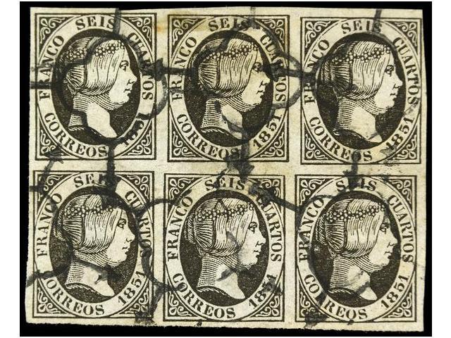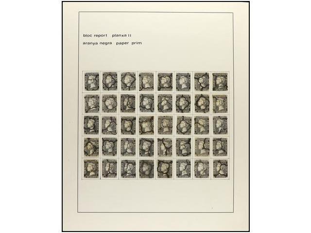 ESPAÑA. 6 cuartos negro. Reconstrucción de la plancha II de 40 sellos con mat. araña negra. Sellos con PAPEL DELGADO. Rara reconstrucción. Ex. SERGI DOMENECH. Ed.1Ap. (Image1)