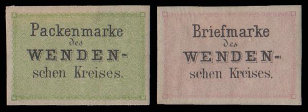 Wenden, 1863 (2k) rose & black & (4k) green & black, official imitations (Scott L2-L3 footnote), o.g., bright and fresh with large margins, Very Fine. Scott $50. (Image)