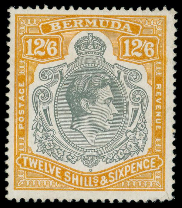 1940, King George VI, 12s6d gray & pale orange, perf. 14, chalky paper (Scott 127a), o.g., hinged, Fine to Very Fine. SG 120b. Scott $110. (Image)