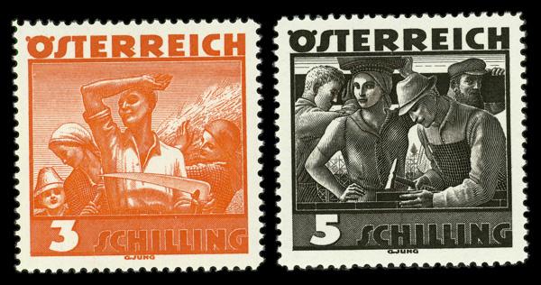 1936, 3s-5s Workers, complete set (Scott 378-379), o.g., never hinged, Very Fine. Scott $85. (Image)