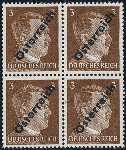 Austria, Michel A.IV b **, 1945 Hittler surcharge on 3 Pf for Soviet zone. Block of four. EUR 300 (Image1)