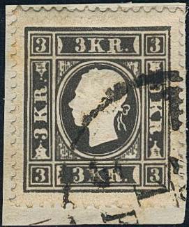 Austria, Michel 11 I used, 1858 King Franz Joseph 3 Kr black type I. On piece. EUR 300 (Image1)