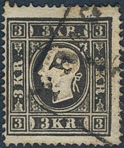 Austria, Michel 11 II used, 1859 King Franz Joseph 3 Kr black type II. EUR 250 (Image1)