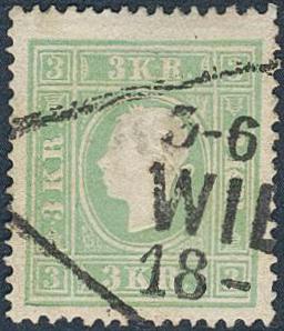 Austria, Michel 12 II used, 1859 King Franz Joseph 3 Kr green type II. EUR 180 (Image1)