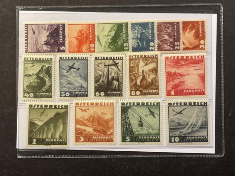 Austria, Michel 598–612 **, 1935 Aeroplanes over Landscapes SET (15). EUR 200 (Image1)