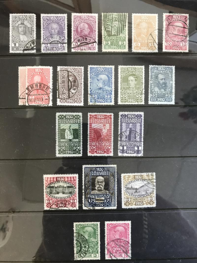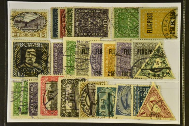Austria, Used 1899–1924. All different, e.g. Mi 68, 83, 155z, 203 I, 418–24A, 424B, 425–32, 433–41, 442–46. Mostly good quality Mi € 668 (48) (Image1)