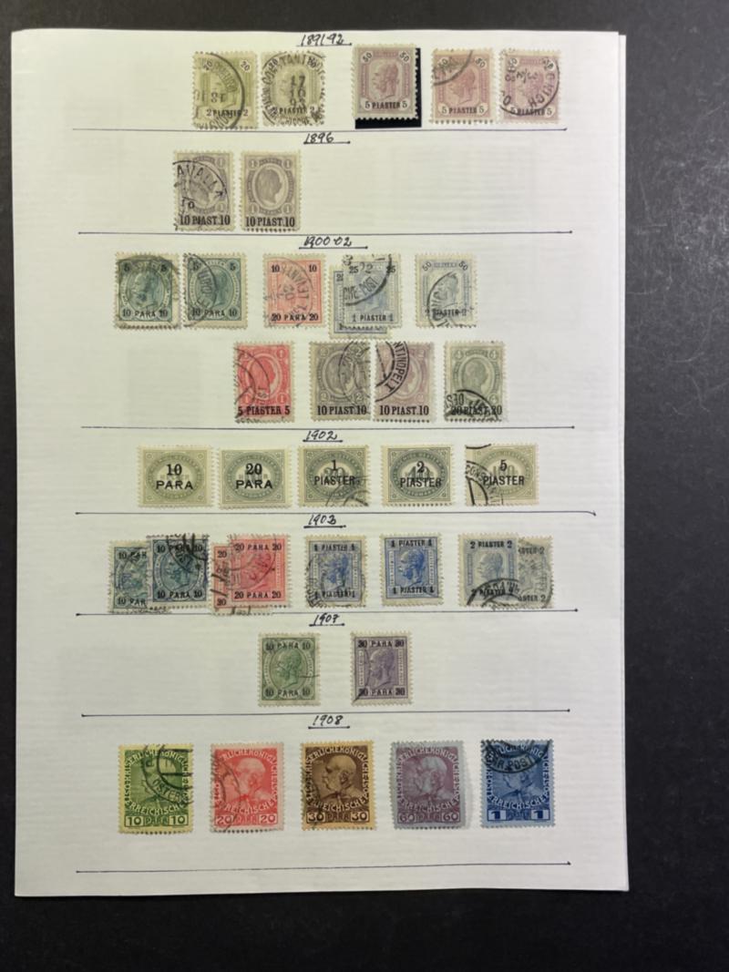 Austria, */used collection 1867–1918 on leaves. P.O in Levant and Military Post quite comprehensive with often both mint and used. The entire lot is presented at www.philea.se. Mostly fine quality (300+) (Image1)