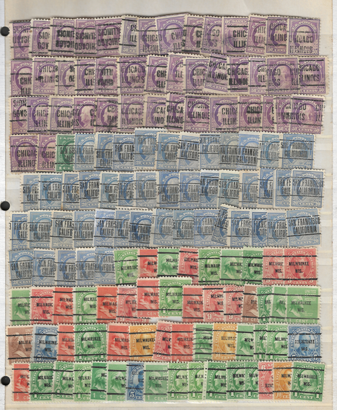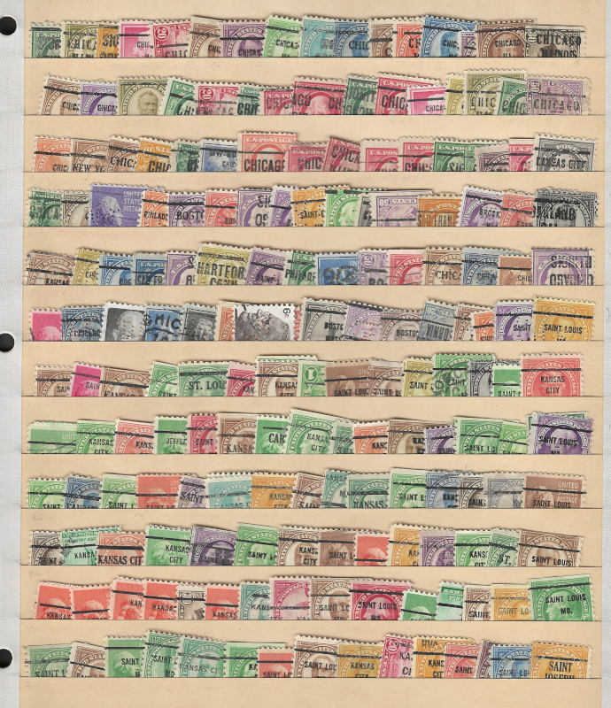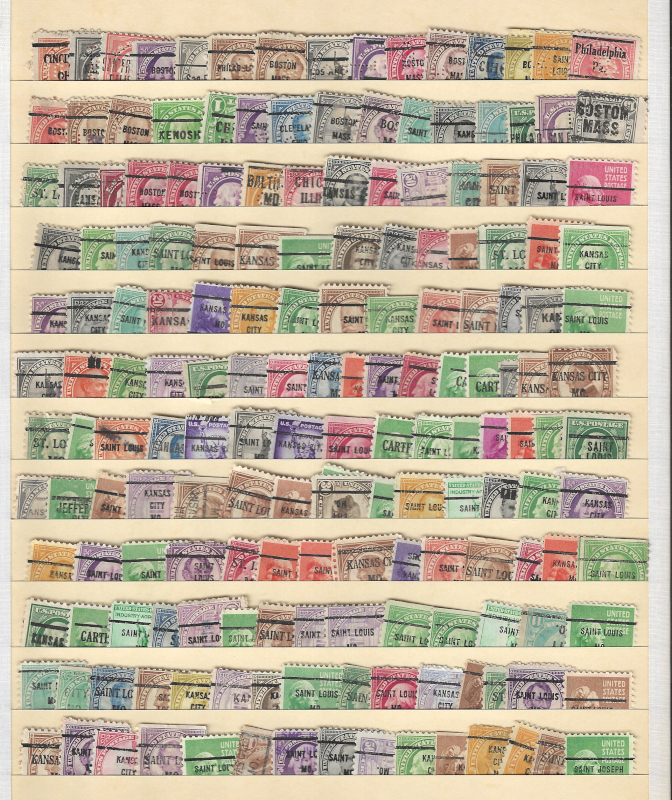 224 O imageBOX LOT #8 (5. lbs.) Contains About 9,000 Pre-Cancelled Stamps (Sorted On Stock Pages), Used, Mostly Pre-1940 Issues, Bureau & Private Pre-Cancels, Mostly Sound Cond., Mostly F-VF (Image) (image2) (image3) (image4) (image5) (All Images)