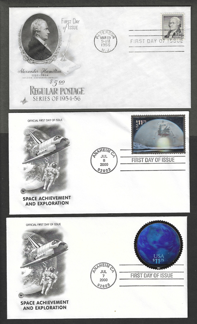 232 c image1052 // 4806, 11 Diff. "Dollar" Value F.D.C.'s, 1955-2013 Issues, Includes 7 Covers with a Cachet, Face Value of Used Stamps was $80.30, Sound Cond., F-VF, SCV is $254.00 (Image) (image2) (image3) (image4) (All Images)