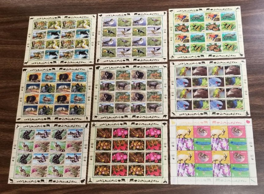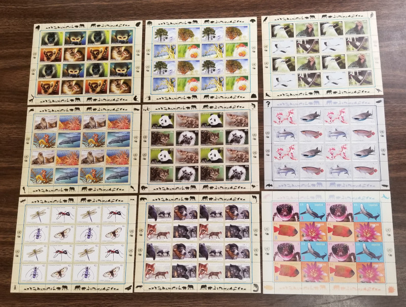 240 nh image"ENDANGERED SPECIES", 66 Diff. Cmpt. Mini-Sheets (16 Stamps Each), 1993 // 2017 Issues, Includes New York #623a // 1165a, Geneva #231a // 635a and Vienna #146a // 604a, Sound Cond., OG, MNH, VF, SCV is $1,633.00 (Image) (image2) (image3) (All Images)