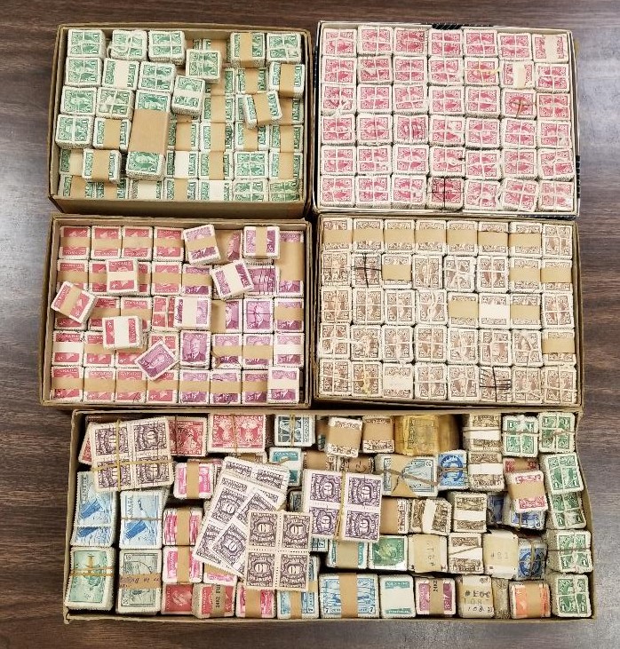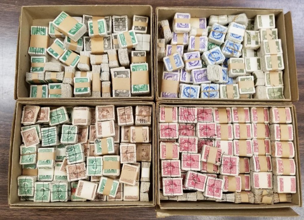 281 O imageBOX LOT (15. lbs.) Contains About 95,000 Used Stamps (Sorted in Bundles or in Glassines), Some Heavy Duplication, 1935-61 Period, Generally Sound Cond., Mostly F-VF (Image) (image2) (image3) (All Images)