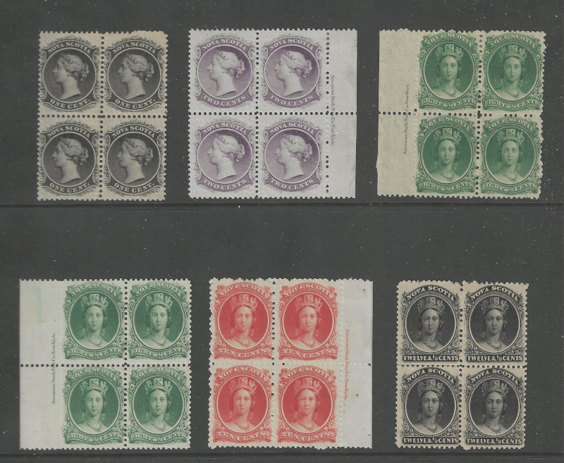 292 og,nh image8 // 13, 6 Diff. Mint Blks. (4 Stamps Each), 1860-63 Issues, Sound Cond., OG, Top Pairs are Mostly LH, Bottom Pairs are Mostly MNH, F-VF, SCV is $674.50 (Image) 675.00