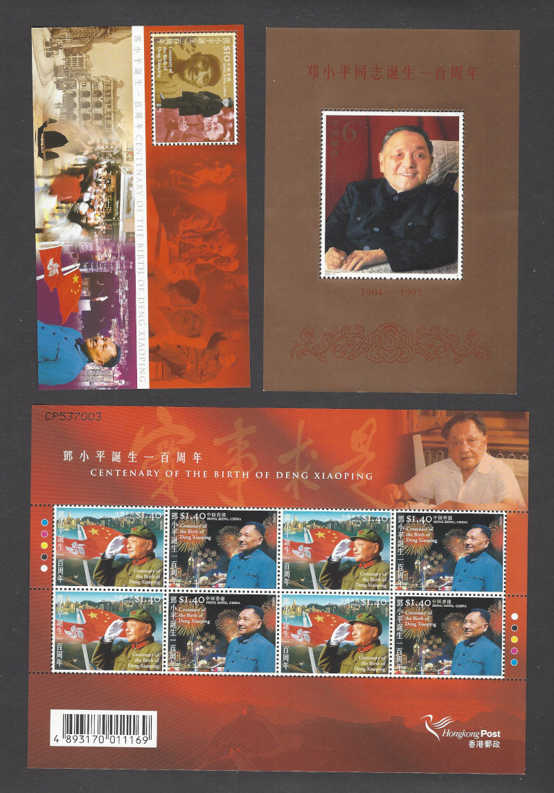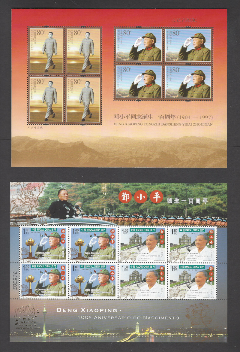 322 nh,O imageDENG XIAOPING, Two Diff. Commemorative Folders, One Includes China #2986-2989 & #3378-3380, One Includes Hong Kong #1110-1111 & Macao #1145-1147, Also Includes 3 Diff. F.D.C.'s, 1999-2004 Issues, All are Sound Cond., All Stamps are MNH, VF, SCV is $80.00 ++ (Image) (image2) (image3) (image4) (image5) (All Images)