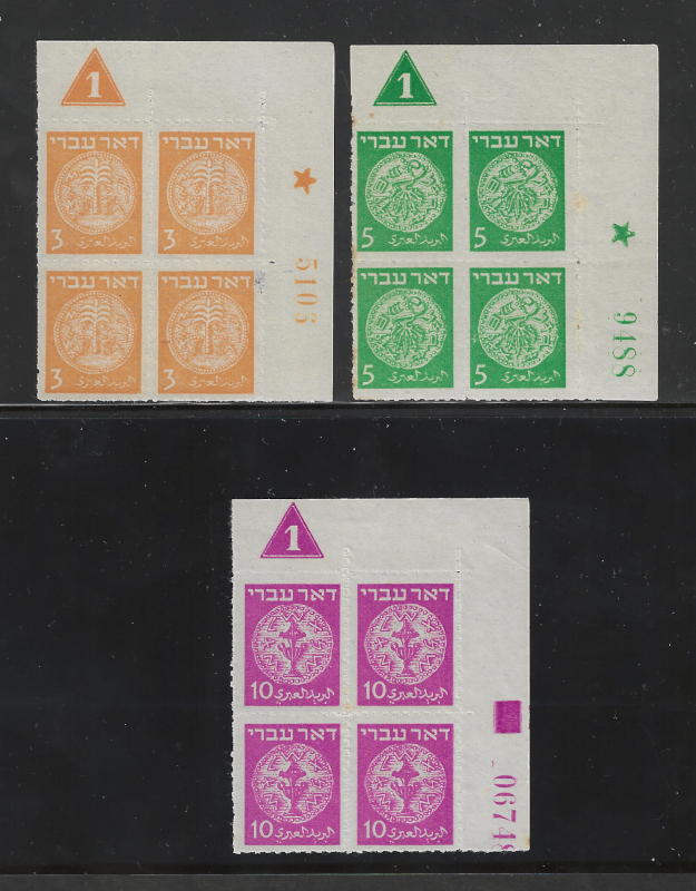393 nh image1a, 2b, 3b, Rouletted (1948 Issue), Each as Corner Blk. of 4 (With Plate #), MNH, OG, Generally Sound Cond., VF, Cat. Value is $200.00 (Est.) (Image) 200.00E