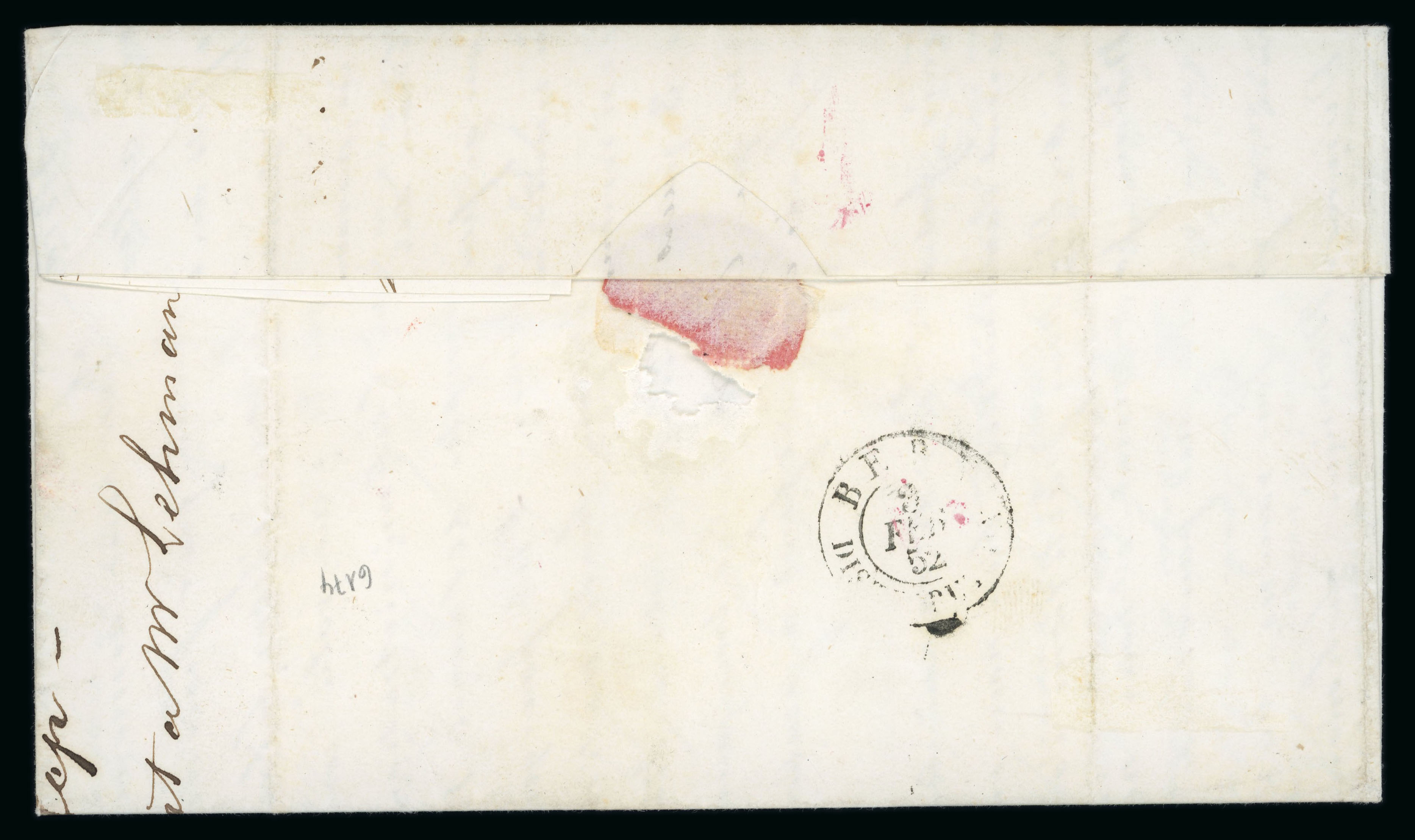 1852, Rayon III kleine Wertziffern Centimes, Type 9, farbintensiv, allseits breite Ränder, auf Faltbrief von Lausanne nach Bern, dekorativ entwertet mit übergehender schwarzer eidgenössischer Raute und nebengesetzt « LAUSANNE 2 FEVR 52 »,