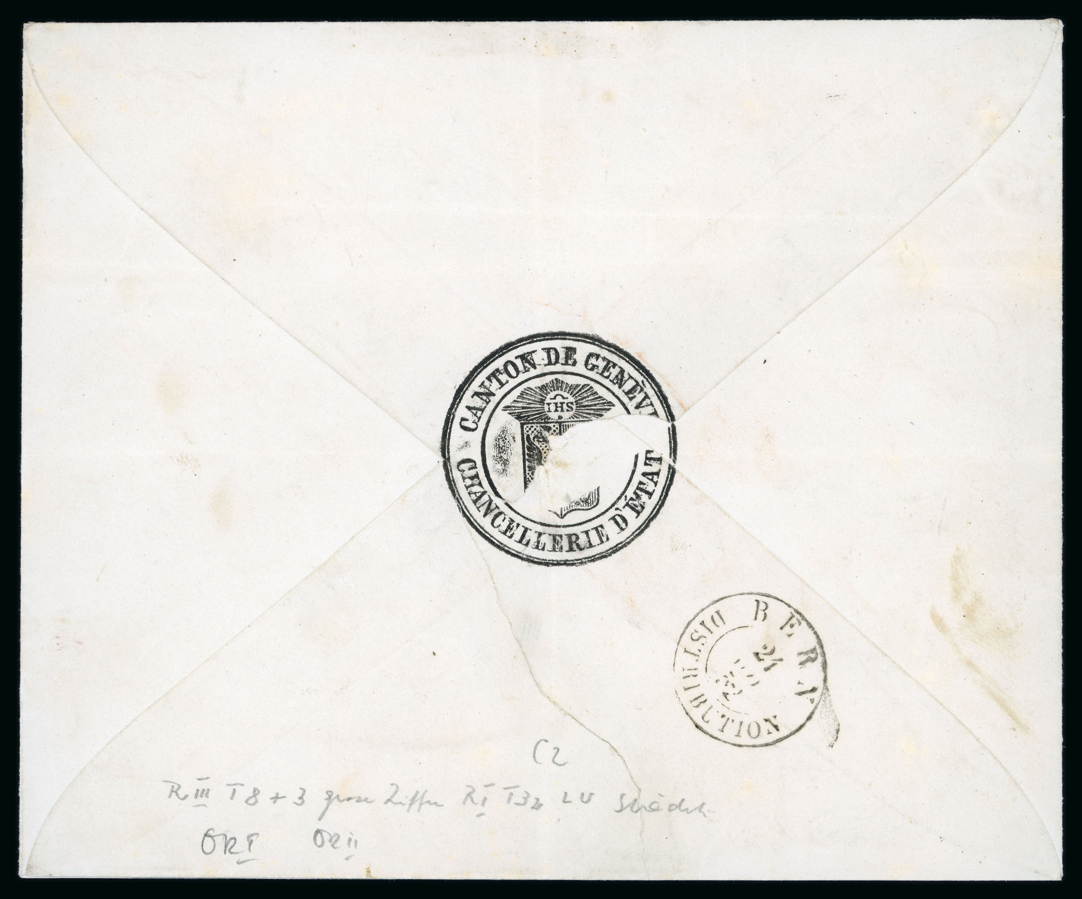 rückseitig Ankunftsstempel Bern. Ein attraktiver Brief aus dem 2. Verwendungsmonat der Marke. Attest Rellstab 1987. SBK = CHF 3000. (Image 1)