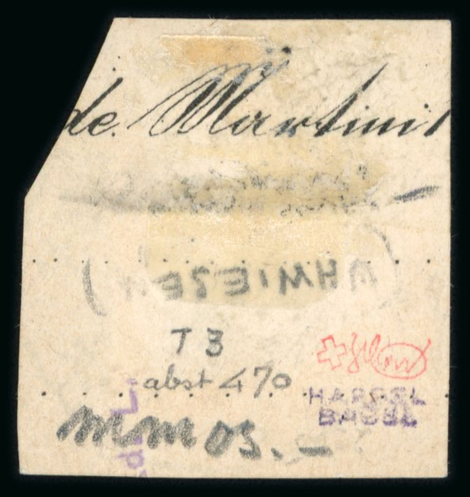 Augelistet in Gerhard Blaickner « Schweizer Auslandsfrankaturen zur Zeit der Rayon-Marken (1850-1854) » auf Seite 98. (Image 1)