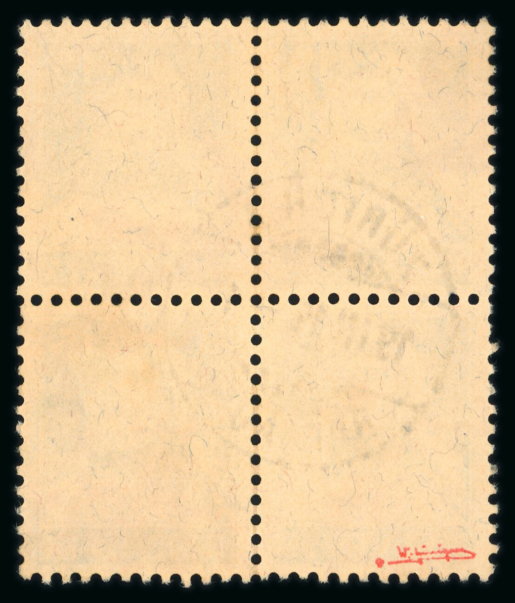 1914, Tellbrustbild 15 Rp. schwarzviolett im Viererblock, farbfrisch, allseits einwandfrei gezähnt, entwertet mit schwarzem Stempel « ZÜRICH 1 19.III.15.-4 BRF. AUFG. ». Ein dekoratives Stück. Attest Liniger 1978. SBK = CHF 1700. (Image 1)