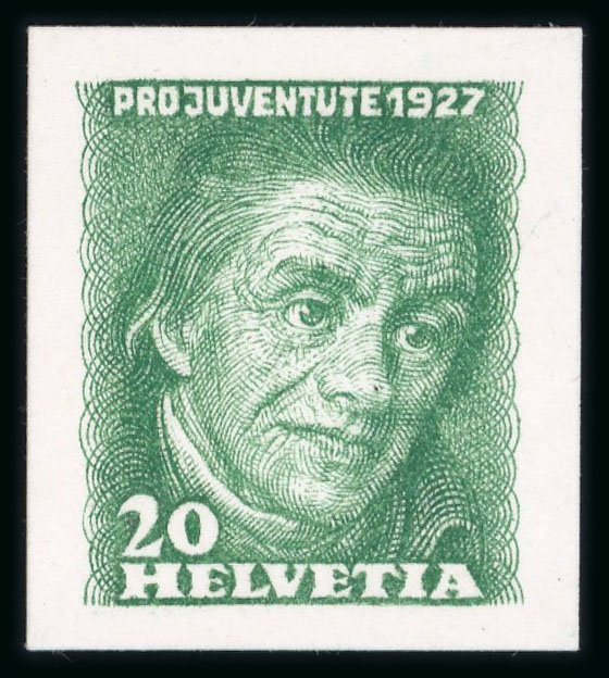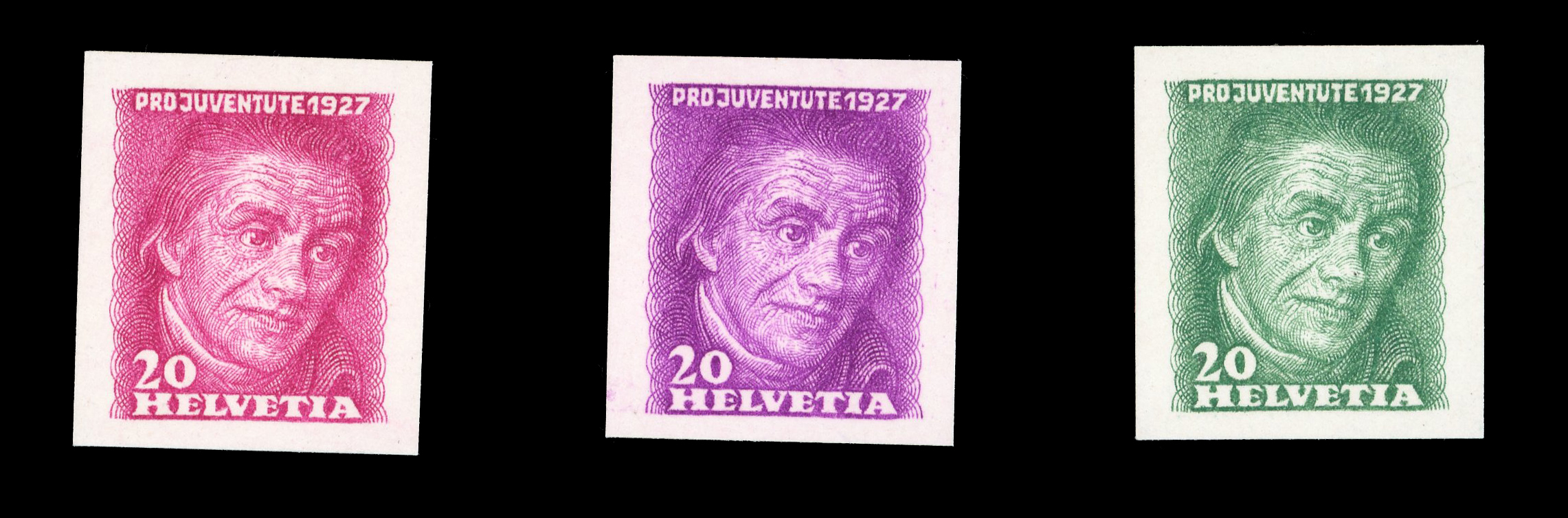 1926, Pestalozzi 3 Probedrucke in grün, lila und violett, ungebraucht mit vollem Originalgummi, postfrisch. SBK = CHF 600. (Image 1)
