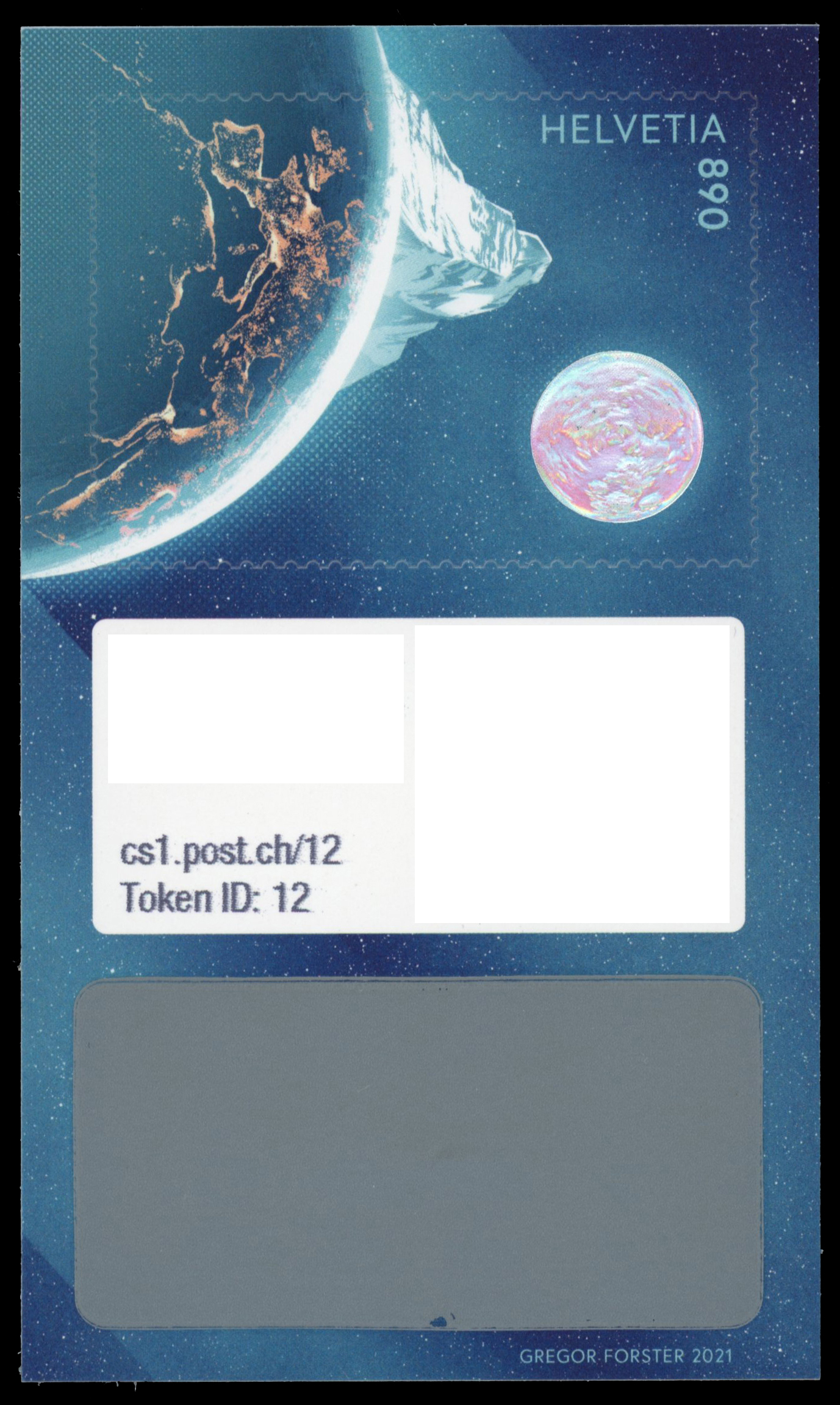 2021, Schweizer Krypto-Briefmarken, Block Swiss Crypto Stamp 1.0„ 890 Rp kompletter Satz von 13 Werten (Token ID 1-13), alle mit der Abbildung eines verschiedenen Bergs als digitales Abbild.