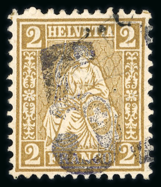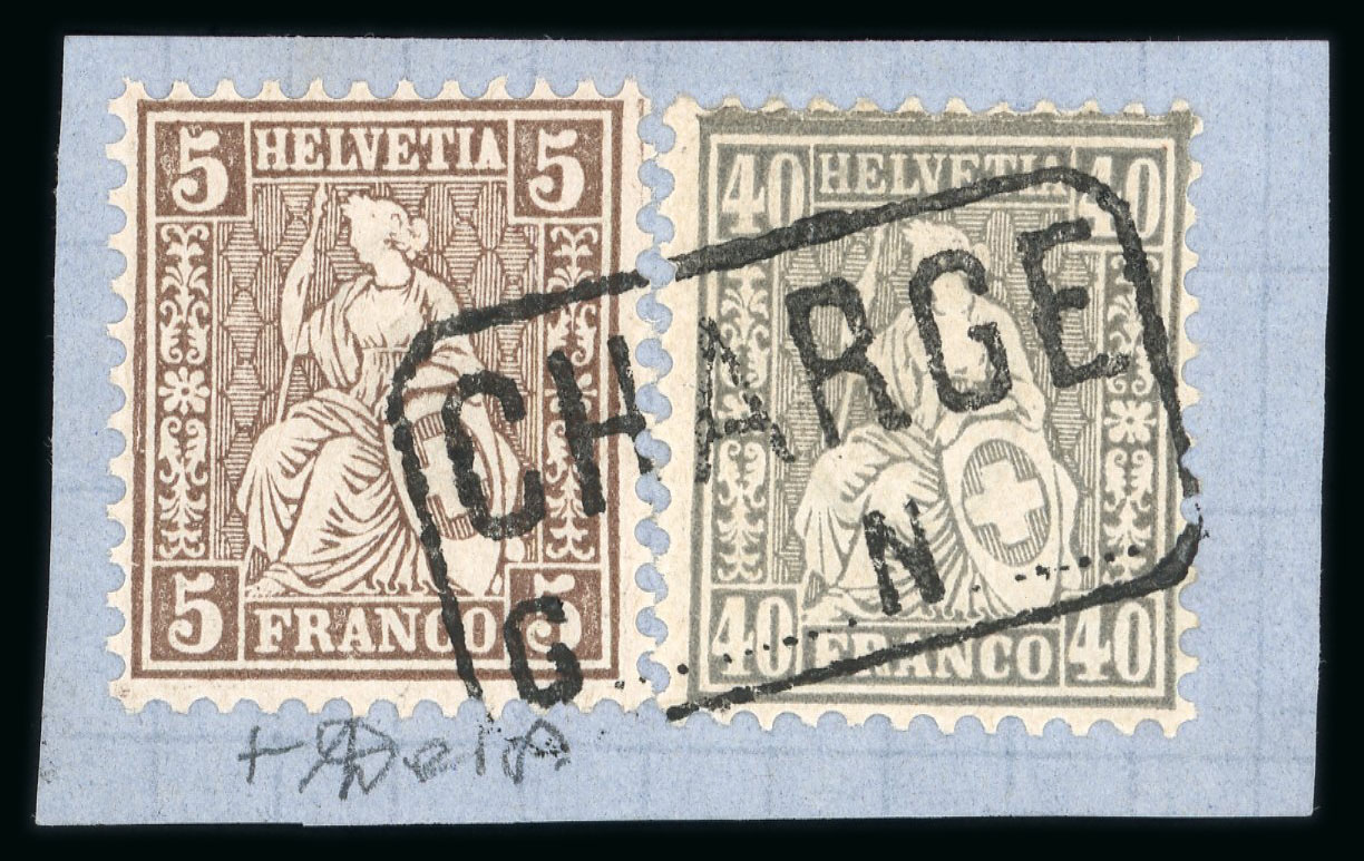 50399 ,O,,   1862-1881, beeindruckende Partie Sitzende Helvetia, Marken und Briefe. Dabei 9 Tafeln mit Kreisstempel in schwarz oder in blau, mit besseren Marken und Nuancen, viele schöne Exemplare und Stempel. Im Weiteren grosser Bestand besserer Marken mit 5 Rp. Doppelprägungen (SBK Nr 30.DP1, 45DP1), 15 Rp. auf Faserpapier signiert Liniger, 40 Rp. auf Faserpapier mit Attest Weid, 50 Rp. Einzelmarke und Paar, 1 Fr. (2), je mit Befund / Attest. Diverse weitere Stempelspezialitäten wie « POST COLLECTION LÖHNINGEN ». Zum Schluss noch diverse Briefe, meist ins Ausland. (Image 1)