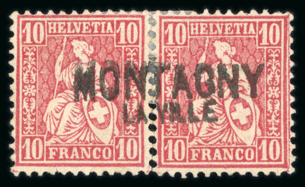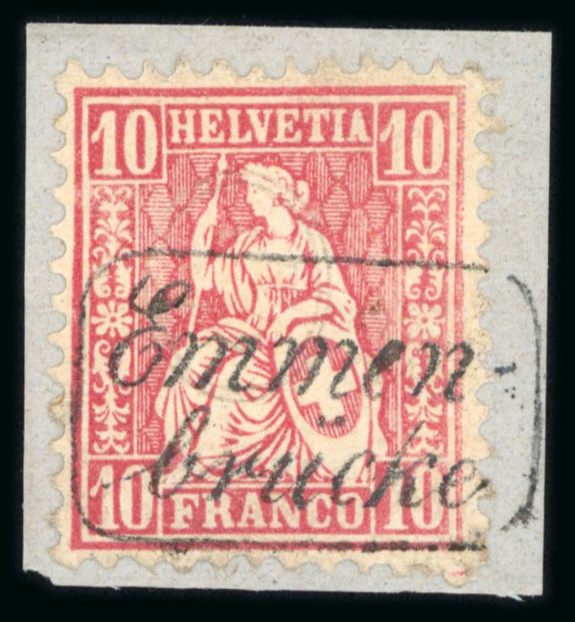 50403 ,O,   1862-78, Zwergstempel, beeindruckende Partie mit 55 Marken, dabei Paare und sogar Dreierstreifen, vorwiegend auf 10 Rp. rot. Der Zwergstempel « LA JOUX » ist in einer besonders grossen Vielfalt vertreten. Viele tolle Exemplare wie 3 Dreierstreifen mit Stempel « LA JOUX », aber auch andere sind vorhanden wie « ZAZIWYL », « ALLWIL », « LITTAU ». In diesem Umfang selten angeboten, generell sehr gute Erhaltung, etliche Stücke signiert, 3 Befunde. (Image 1)