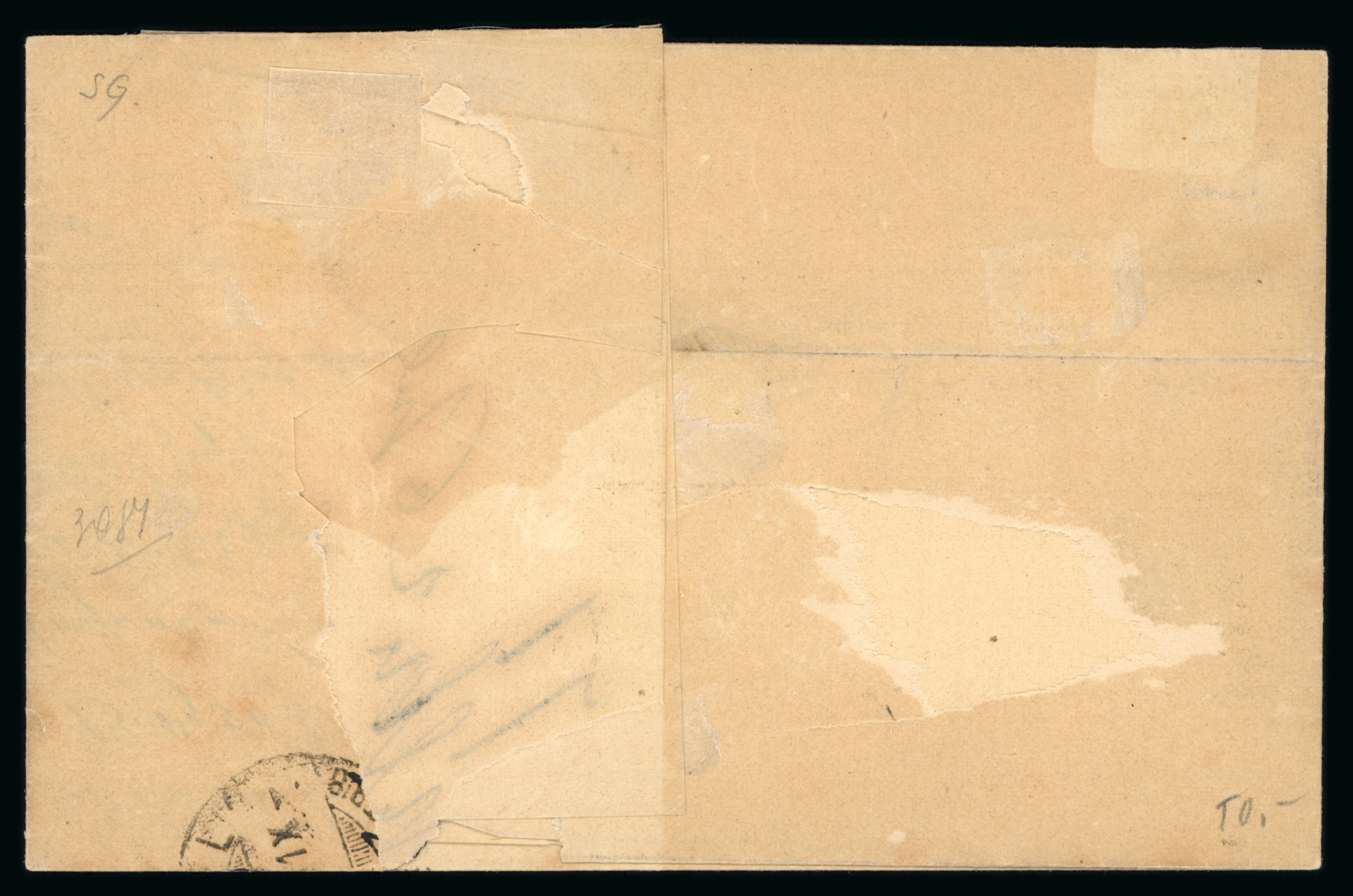 50405 ,O   image1862-78, Eingefasster CHARGE, kleine Zusammenstellung von 9 Marken, 2 Paaren und 3 Briefstücken. 6 Marken haben den Stempel in blau, die anderen in schwarz. (Image 1) (Image 2) (Image 3)