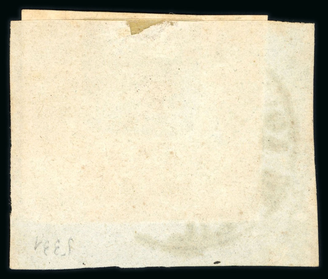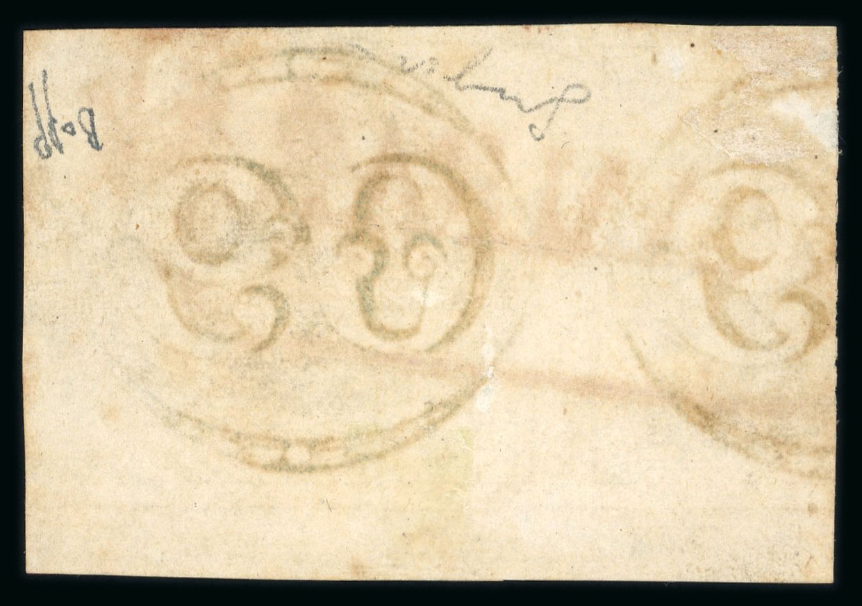 Cuiaba (Correio Geral De) (MT): 60r. black bisected or cut affixed to small piece with full violet-purple unframed cancel with manuscript date "3/10 1853", the piece affixed to backing papers, scarce legible strike. (Image 1)