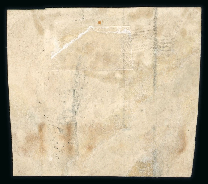Franca (SP): 60r. black with margin touched down right side used with large part brownish handstamp (Ayres 1526), small surface abrasion bottom right and paper thinning to the left of this. (Image 1)