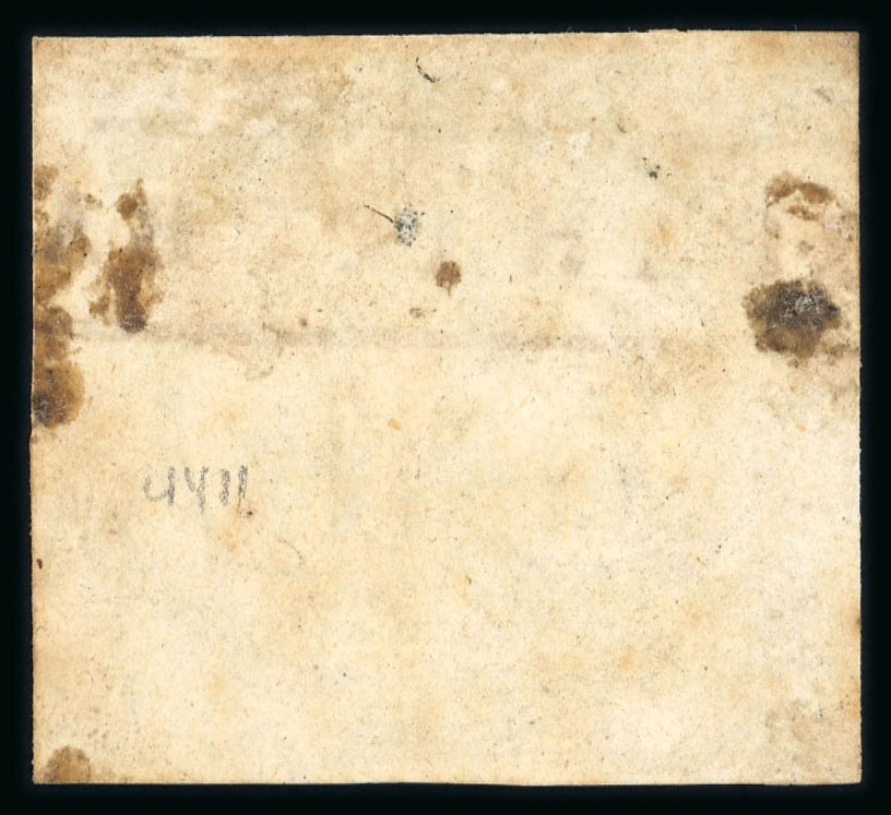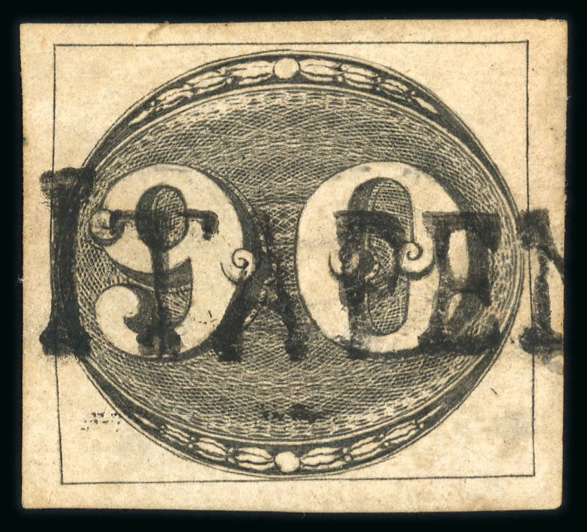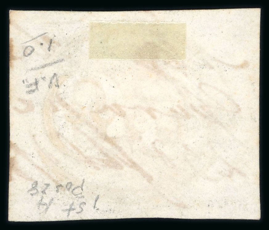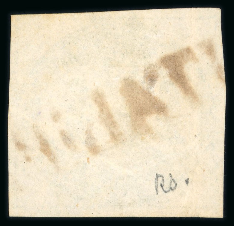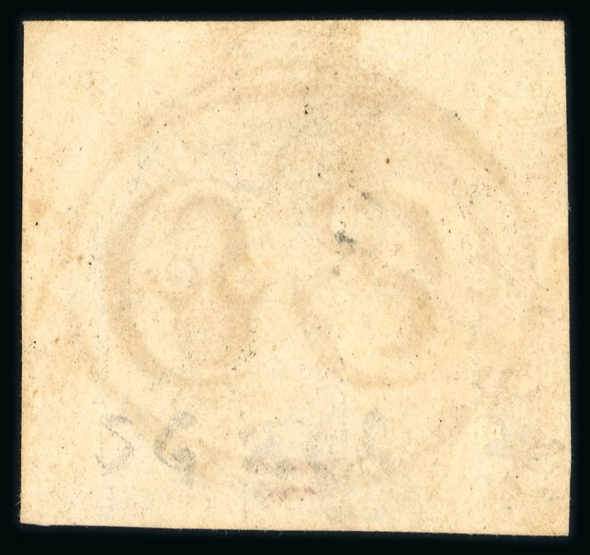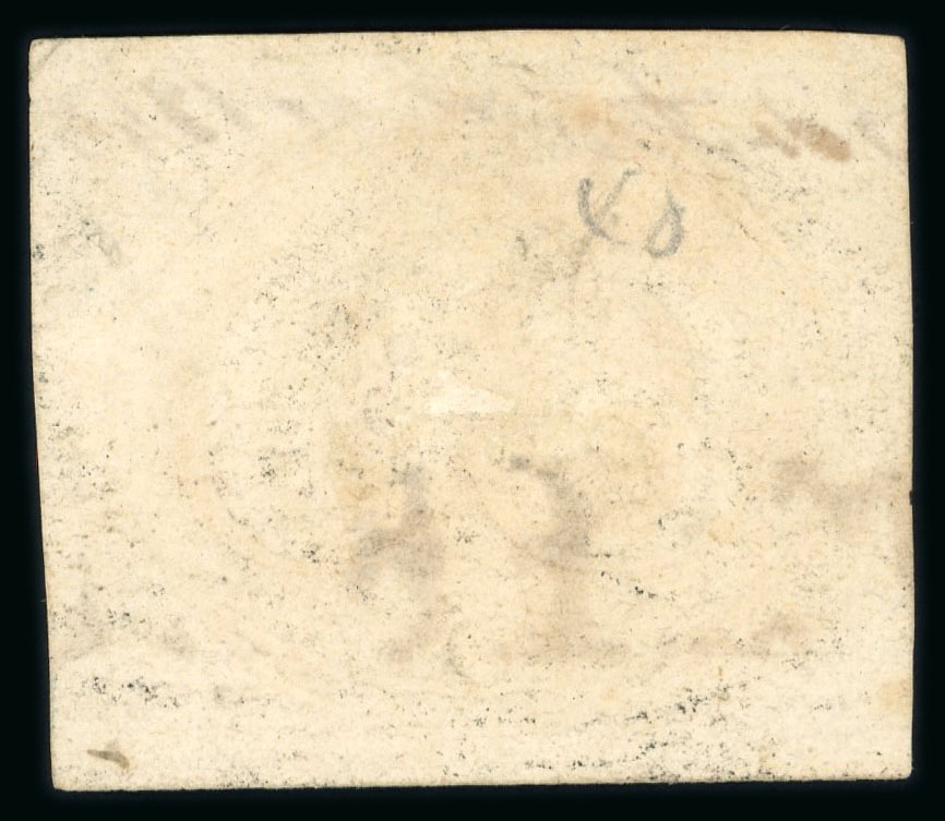 Inutiliz. (SP): 60r. black, early impression four good margins cancelled with virtually complete handstamp, slight thinning at top and some paper adhesion at centre, rare. (Image 1)