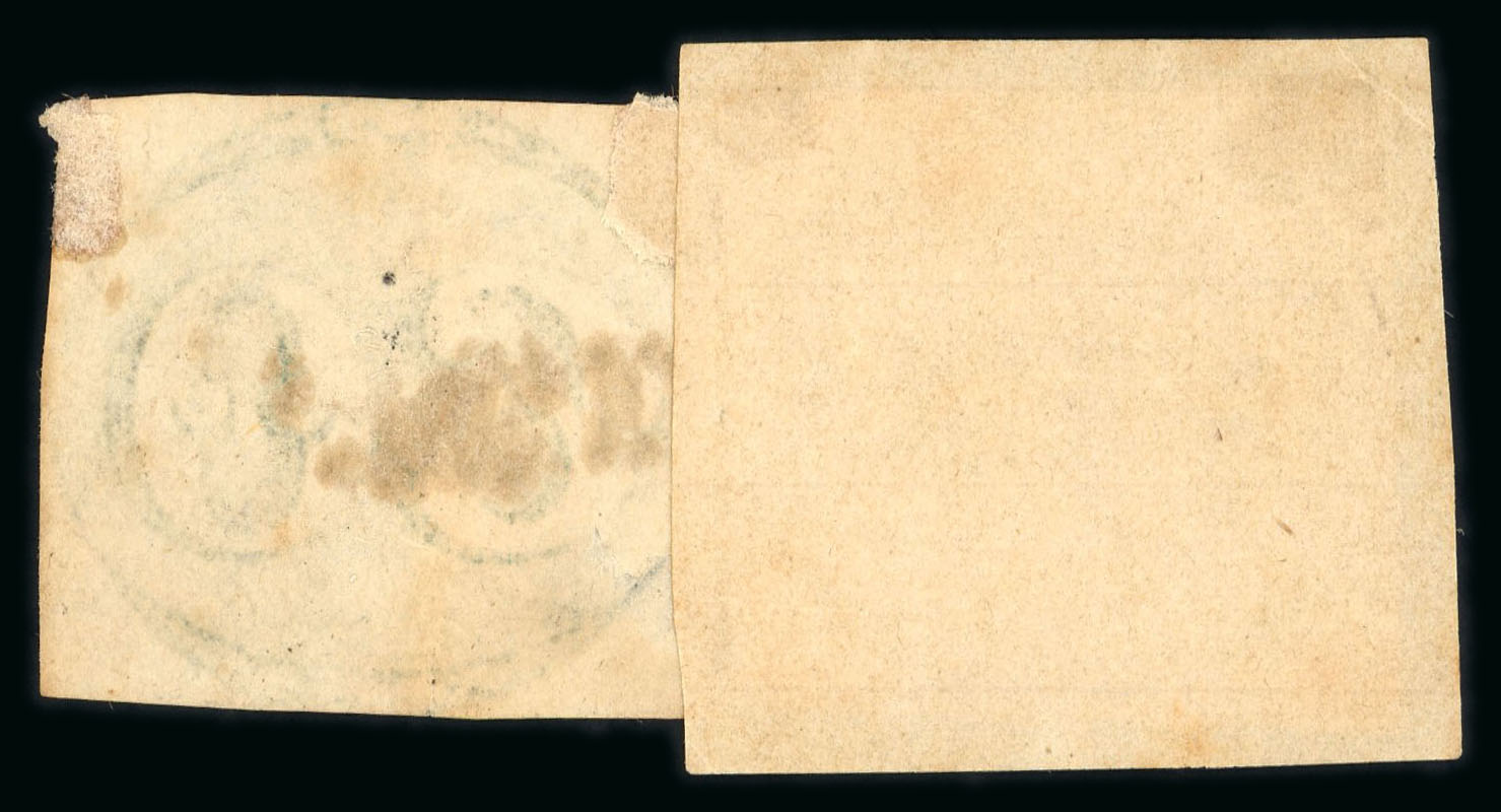 Pernambuco: 1843 60r black, early impression, a partial pair with over half of adjoining stamp at left, good margins on the three remaining sides cancelled with large part Pernambuco 'Shield' date stamp (Ayres 1548), fine and fresh. (Image 1)