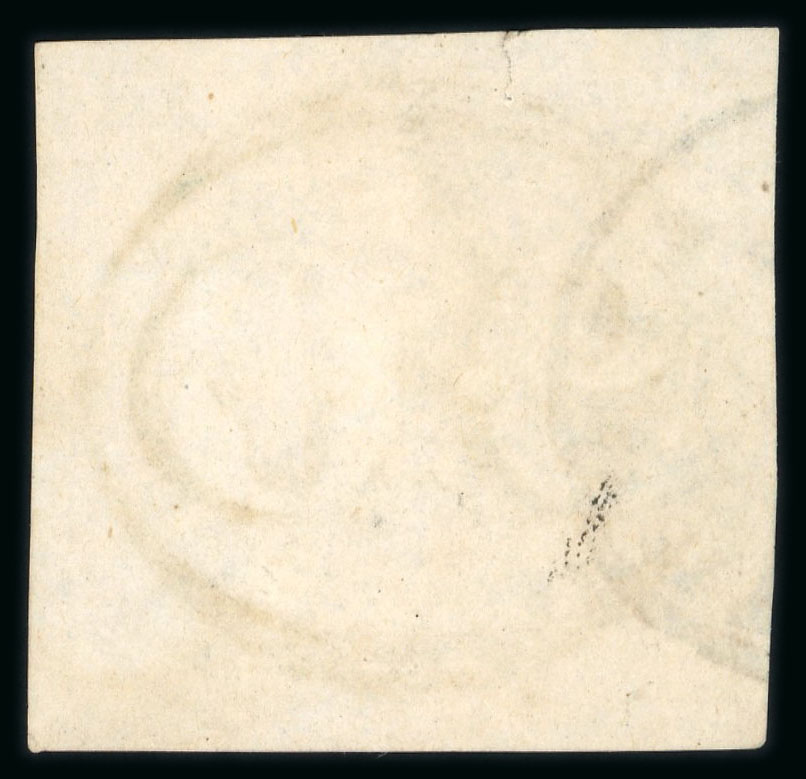 Principe (SP): 60r. intense black early impression , four good even margins used with good part of red framed handstamp reading down from top left, very fine appearance and extremely rare, but with crease running horizontally through