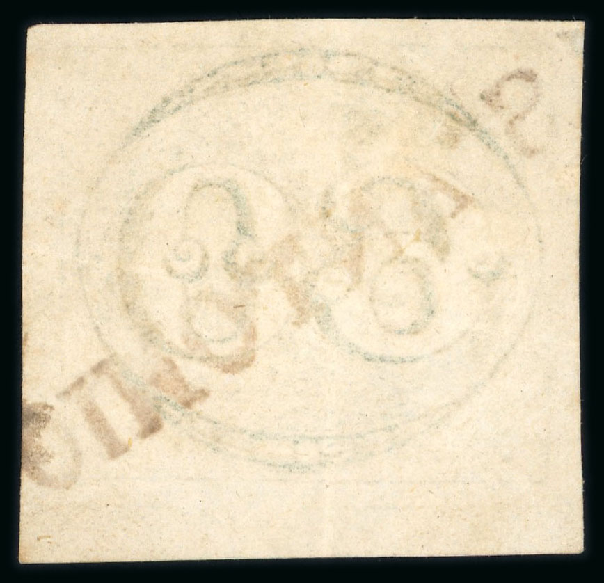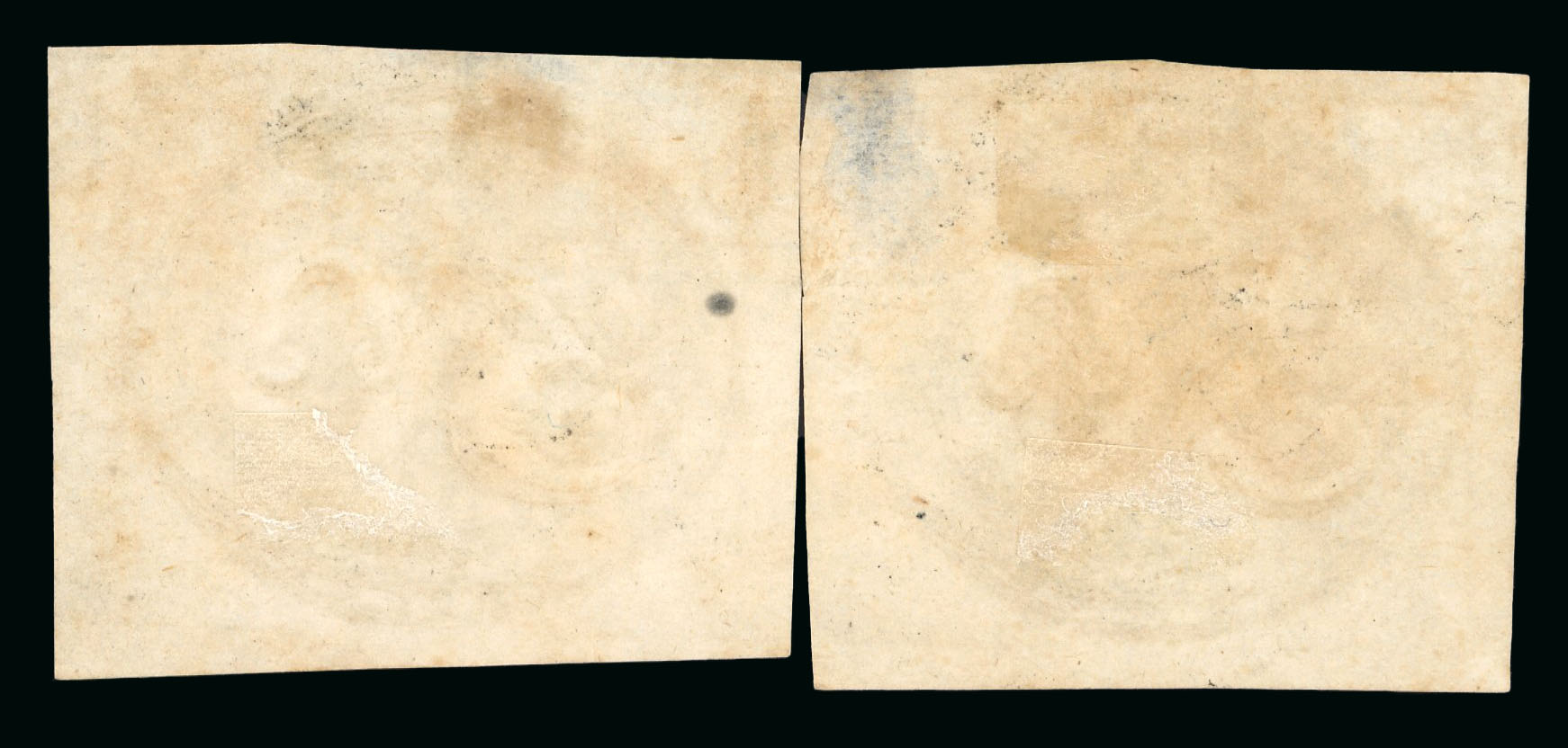 first stamp with slight thinning top right corner, the two stamps illustrated in Ferreira page 167. This postmark is priced in RHM at 7000 USD (Image 1)
