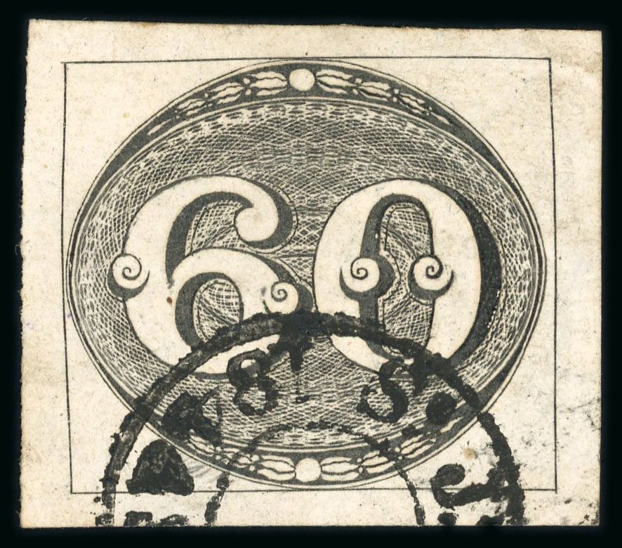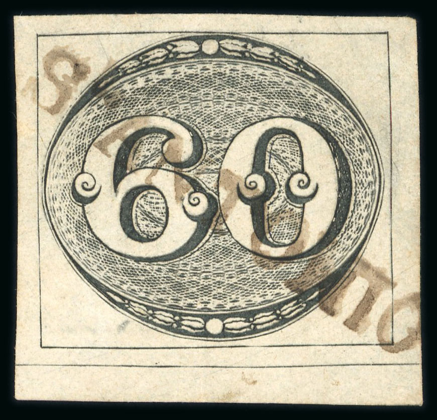 Santo Antonio (RS): 60r. black, good to large margined example with full dividing line at base cancelled by complete handstamp, running top left to bottom right, extremely fine and very rare with only five recorded and this one belonging