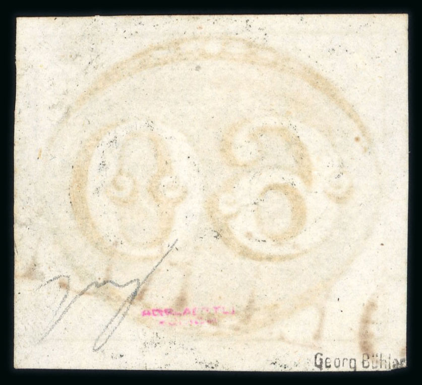 Sao Joao del-Rei (MG): 60r. black, four good even margins fresh used with part sraight-line unframed handstamp (Ayres 1170), reverse Georg Bühler handstamp. (Image 1)