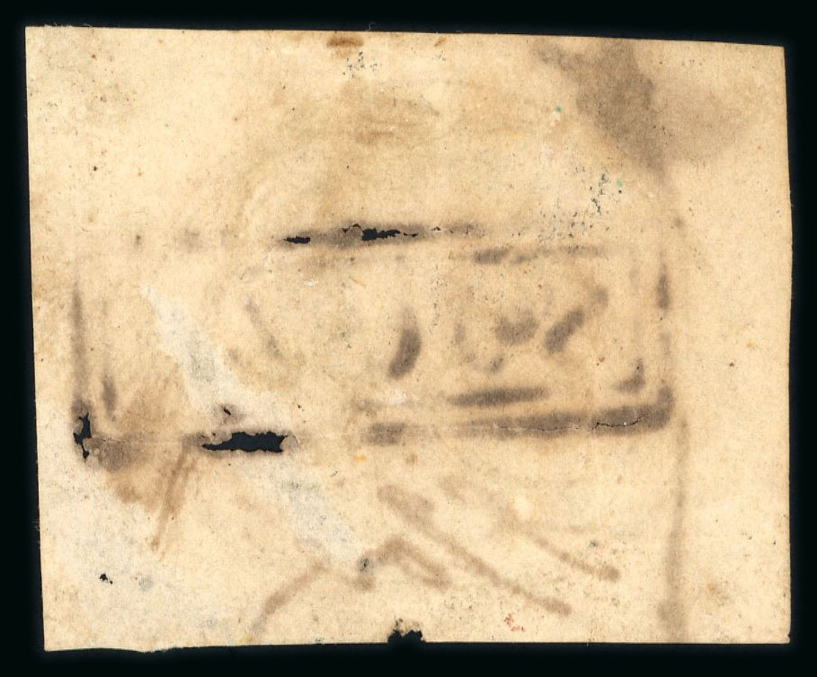 Sao Gabriel (RS): 60r. grey-black, four margins used with part two straight-line handstamps, some faults with holes caused by ink erosion and small tear at top to right of 'S', very rare. (Image 1)