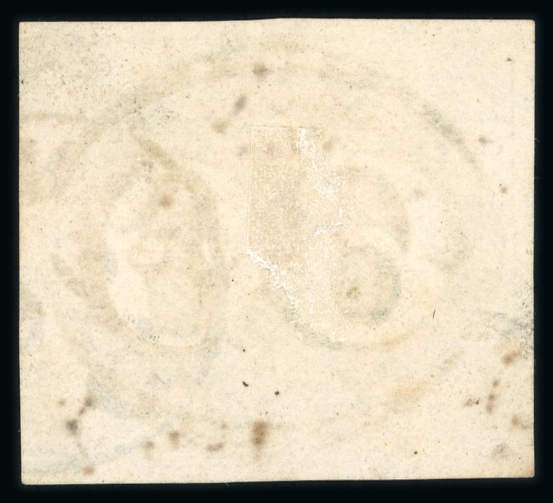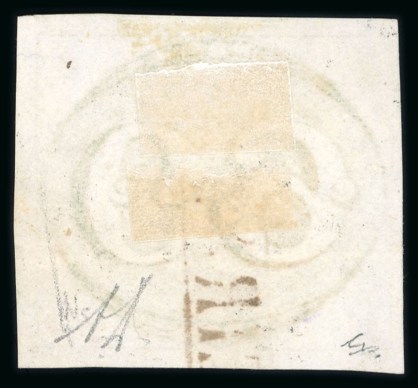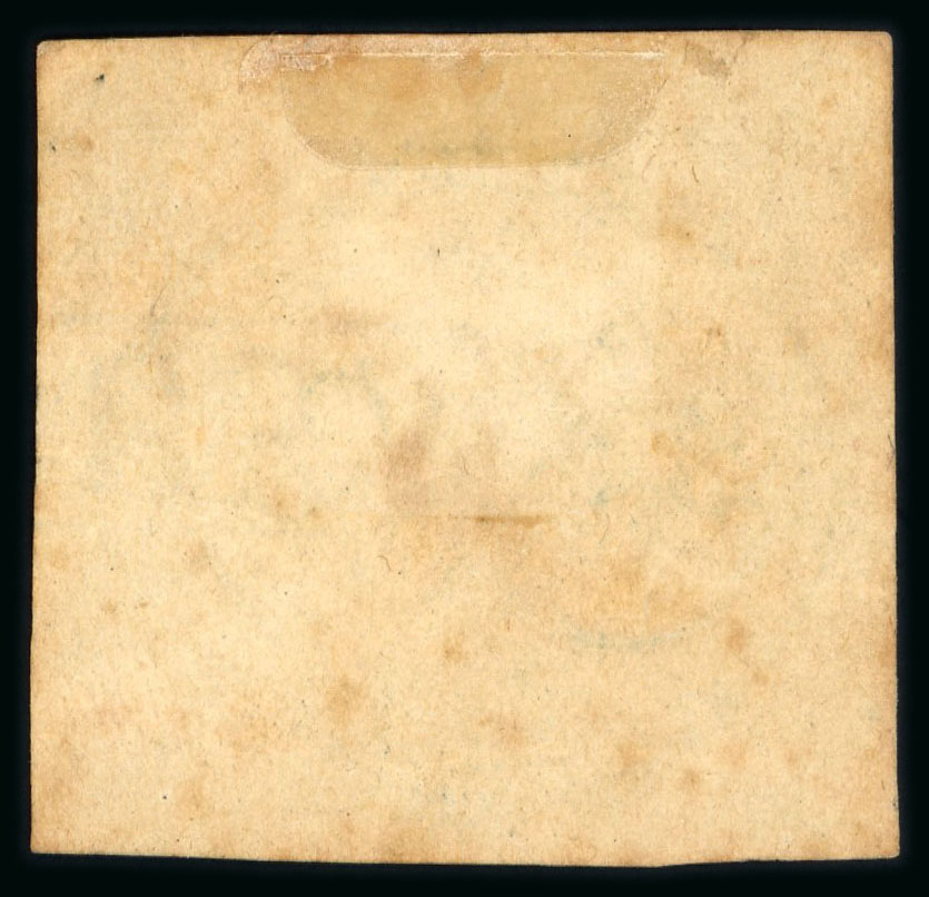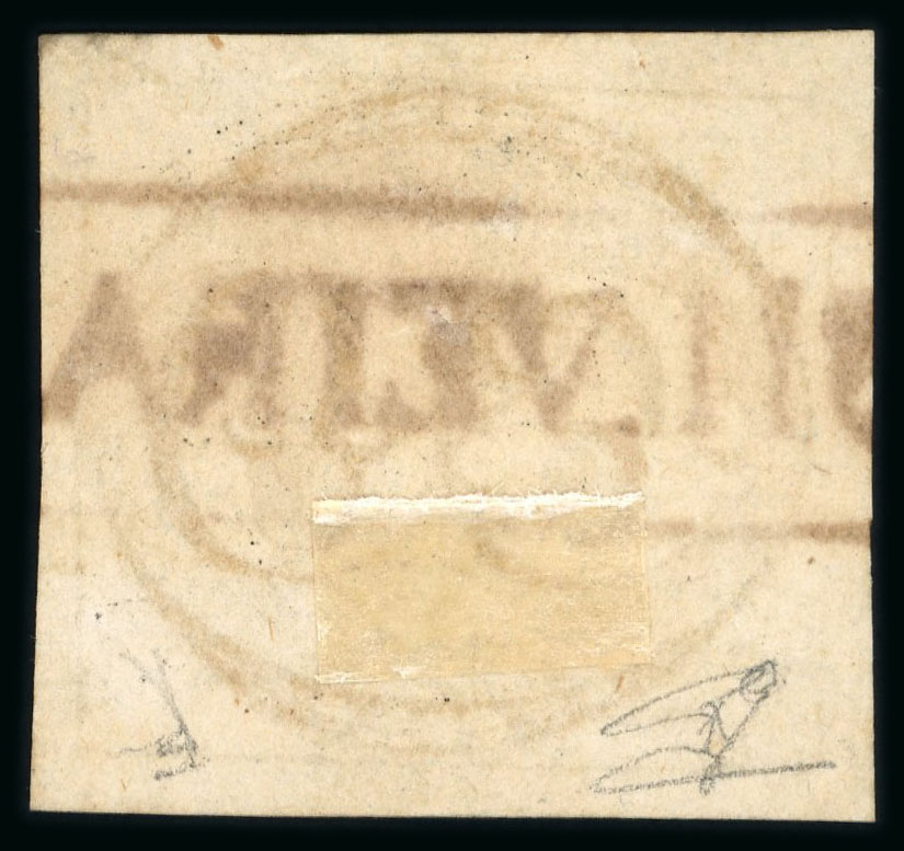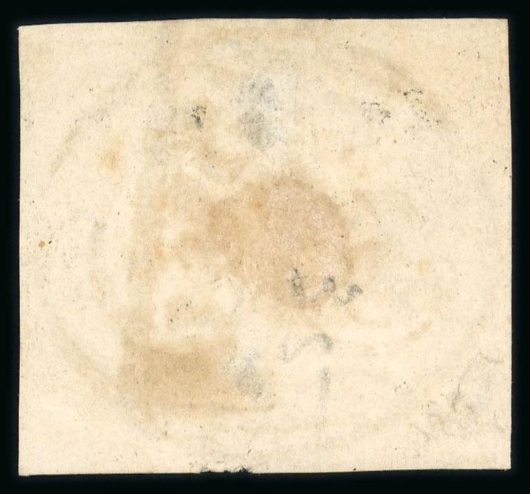 Silveiras (SP): 60r. black, four good to large margins with full dividing line at top used with bold strike of framed, straight-line handstamp in reddish brown (Ayres 1502), red Stolow handstamp on reverse together with pencil initials.