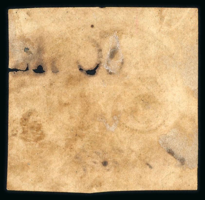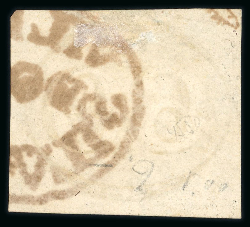 Tacoahy (RJ): 30r. black four clear but very close margins with part of handstamp reading upwards, some slight paper thinning towards top. Spelt Tacoahy but accepted as from Itagoahy. (Image 1)