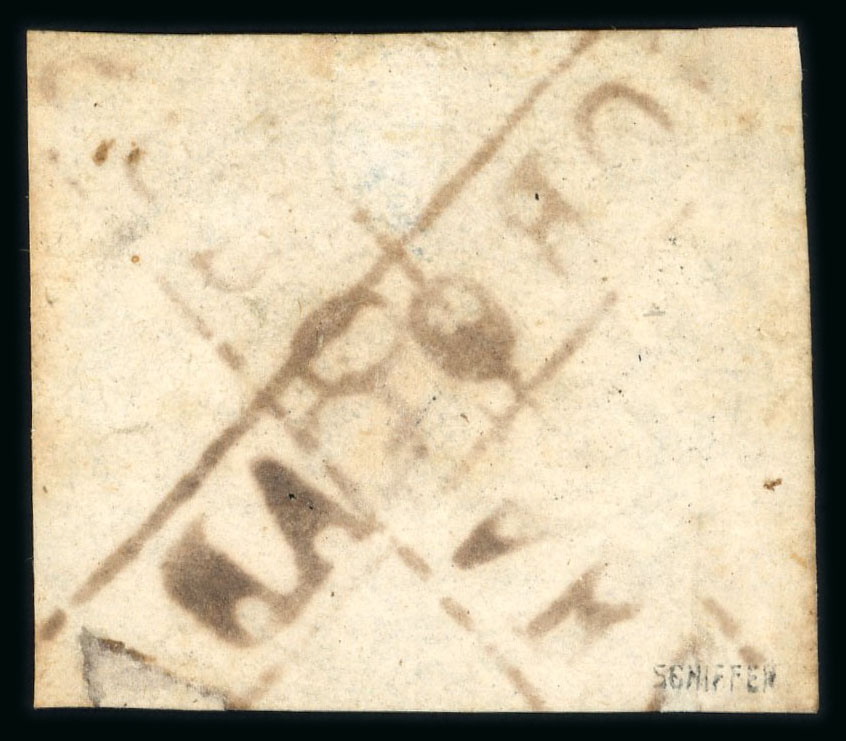 Sao Paulo, Correio Geral de: 60r. black, four close to good margins used with large part clear blue date stamp of 12/ 11 1843, this example illustrated in Ferreira page 180. (Image 1)