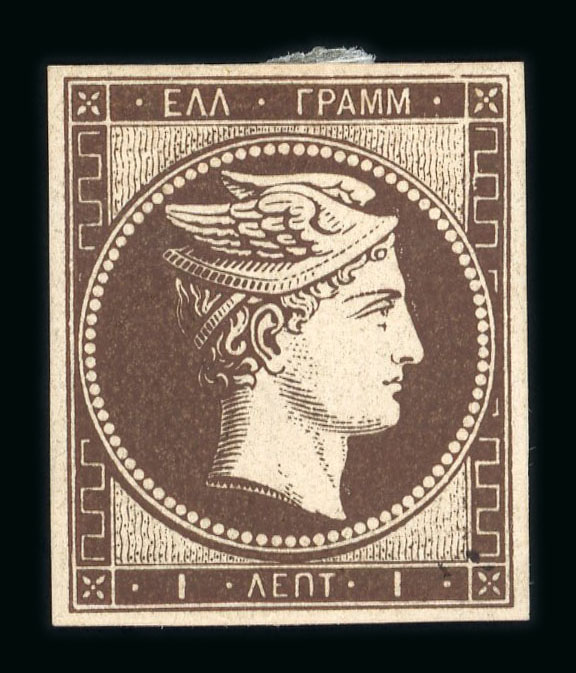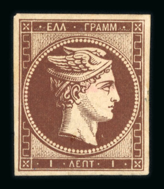 1 lepton two plate-proofs, both in brown with good margins - "Barre proofs" (Constantinidès n° 1 ES. V) with plate flaw "coin rond" (Position 91) & (Constantinidès n° 1 ES. V.) with plate flaw "pro. inscript."