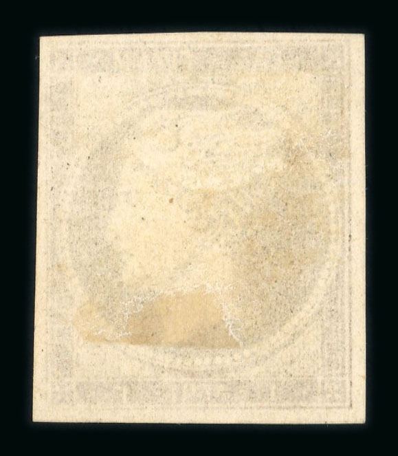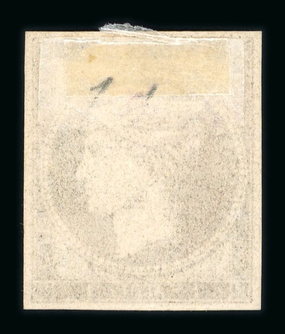 1858 French Essay: Single of the "Cérès 1858" plate-proof in black. Repaired. Less than a handful are known. (Image 1)