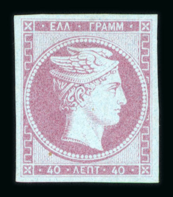 40 lepta plate-proof in orange-red with good to large margins (Constantinidès n° 6 ES. III.4), thin and wrinkle at left. (Image 1)
