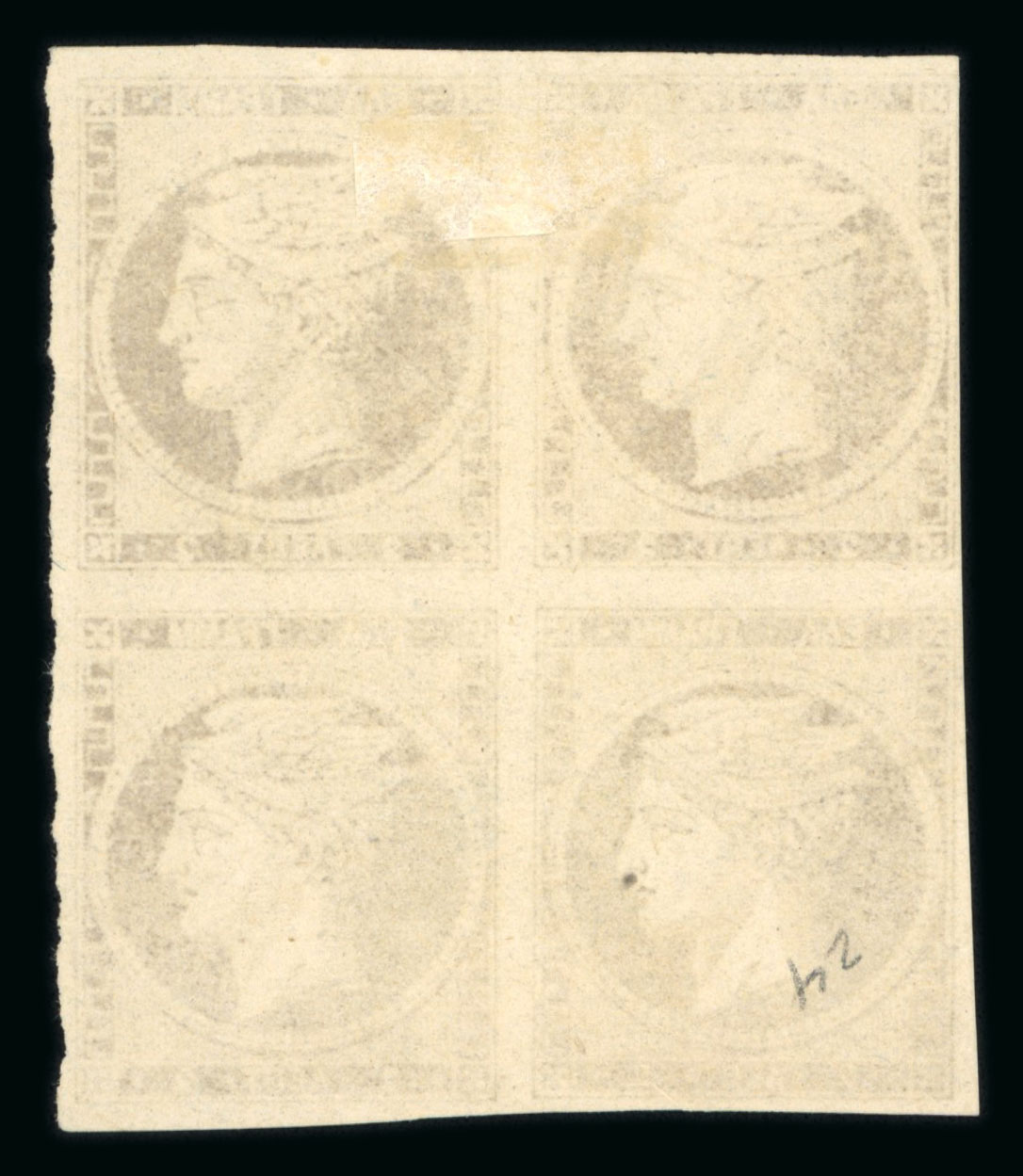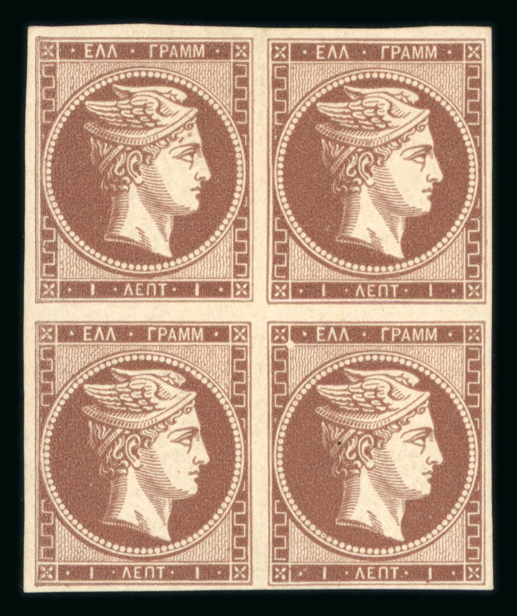 1 lepton Consecutive Athens printings (1862-1867) - Mint block of four, small hinge remnants, very fine. (Image 1)