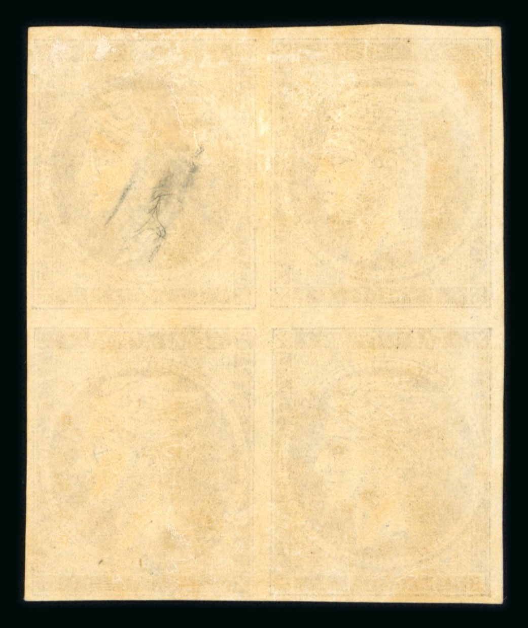 2 lepta Consecutive Athens printings (1862-1867) on thin paper, used block of four. Dotted cancel "81" of Sifnos (Type I), rare destination. Close to large margins, very fine condition. (Image 1)