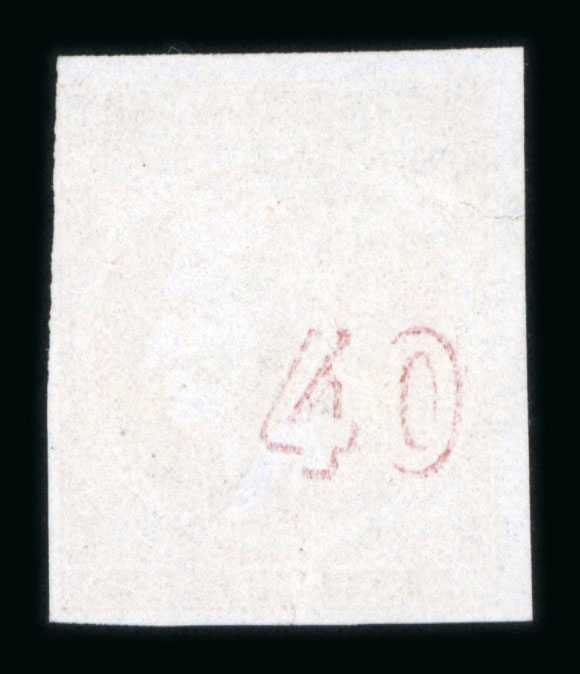 40 lepta Consecutive Athens printings (1862-1867) "Groseille" shade ("currant", bright purplish mauve) - cancelled (Type II), with tears at upper left and base. (Image 1)