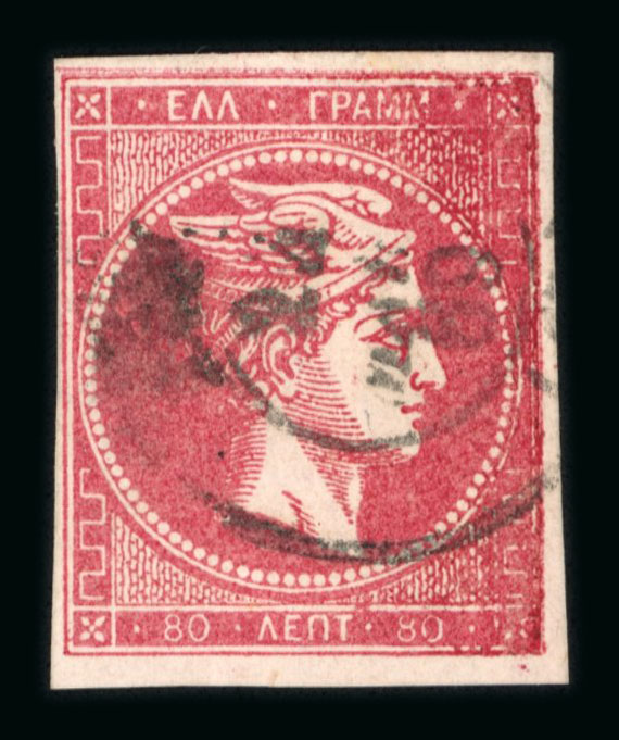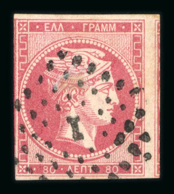 80 lepta Consecutive Athens printings (1862-1867) - dotted cancel "1" of Athens (Type I) - Short to large margins, fine condition.