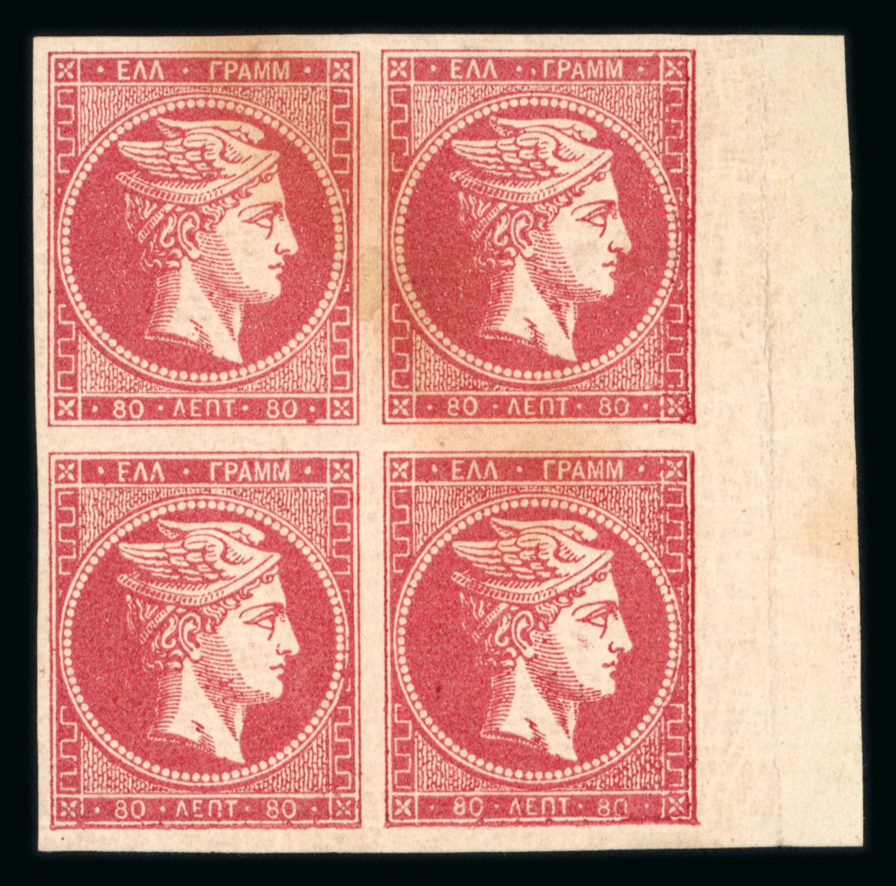 80 lepta Consecutive Athens printings (1862-1867) - mint marginal block of four from positions 139/140-149/150.