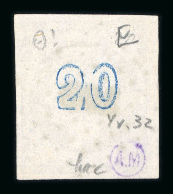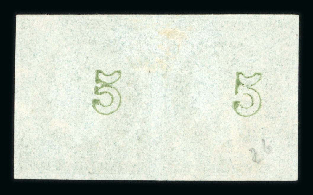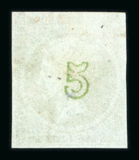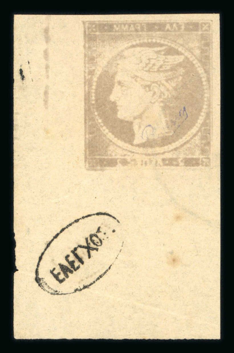 5 lepta yellow-green, unused, touched to large margins, displaying thick impression of the control figure, a very rare unused stamp, only a few known (Hellas 25a, €5'000) (Image 1)